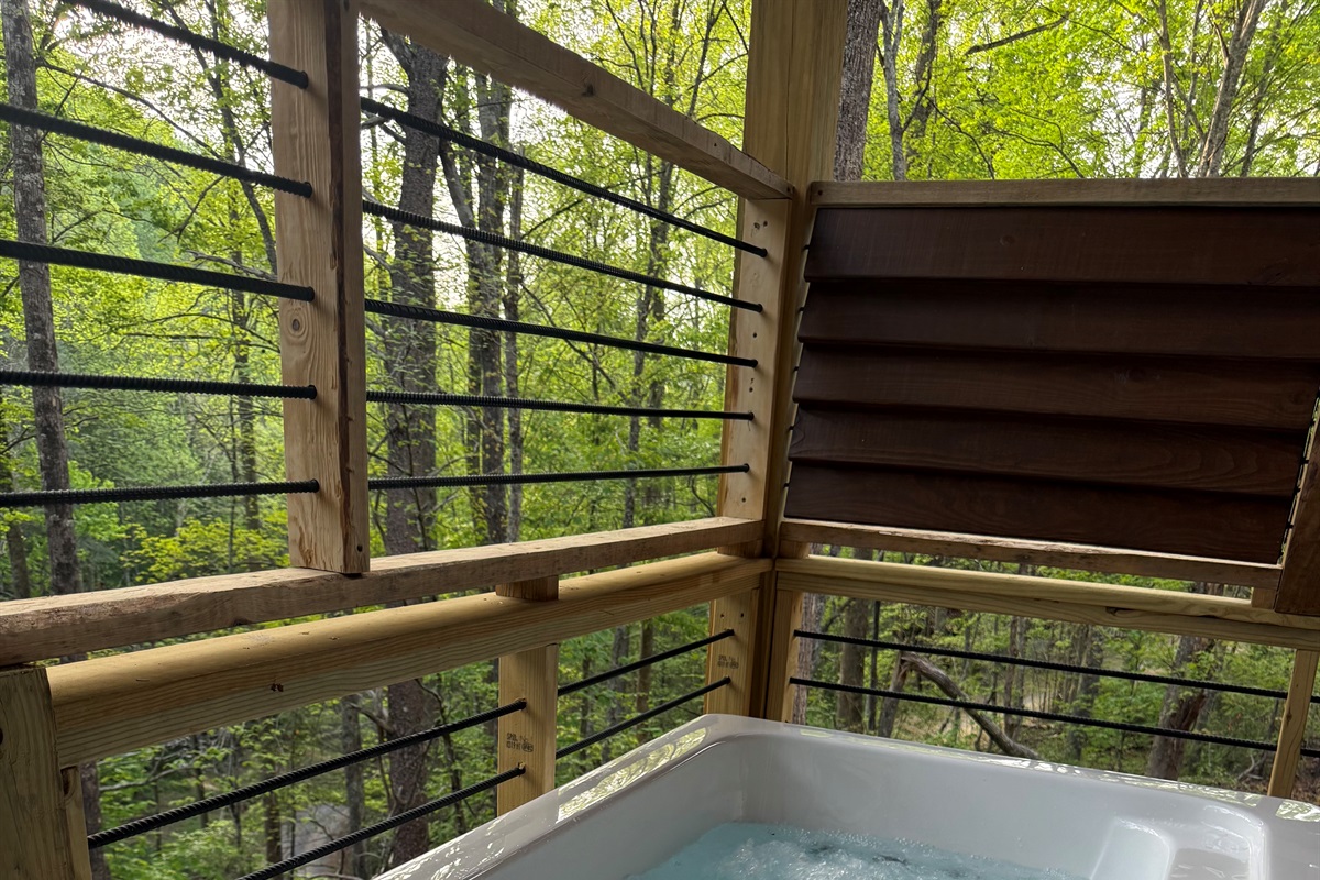Private hot tub on a wrap-around deck, perfect for soaking under the stars